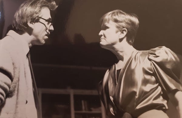 There is a story that goes with Virginia Woolf. Claudia got to do it with her late second husband, David LaGraffe. They were both teaching at the time (She was the drama teacher at Waynflete School in Portland for several years), but it was February vacation and they had a little extra time to learn their lines before school and rehearsals began. Nine days.